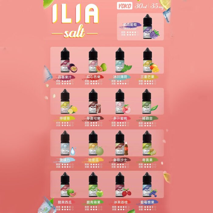 高品質原料:ILIA 煙油採用食品級甘油與丙二醇作為基底,安全無害,帶來細緻順滑的煙霧,減少對口腔與喉嚨的刺激。