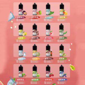 百香果30ML, 奇異果30ML, 冰爽荔枝30ML, 三重芒果30ML, 檸檬草30ML, 零度可樂30ML, 寶礦力30ML, 多肉葡萄30ML, 紅心芭樂30ML, 冰川薄荷30ML, 鐵觀音30ML, 哈密瓜30ML, 麥根沙士30ML, 酷爽西瓜30ML, 脆青蘋果30ML, 藍莓漿果30ML, 多汁蜜桃30ML