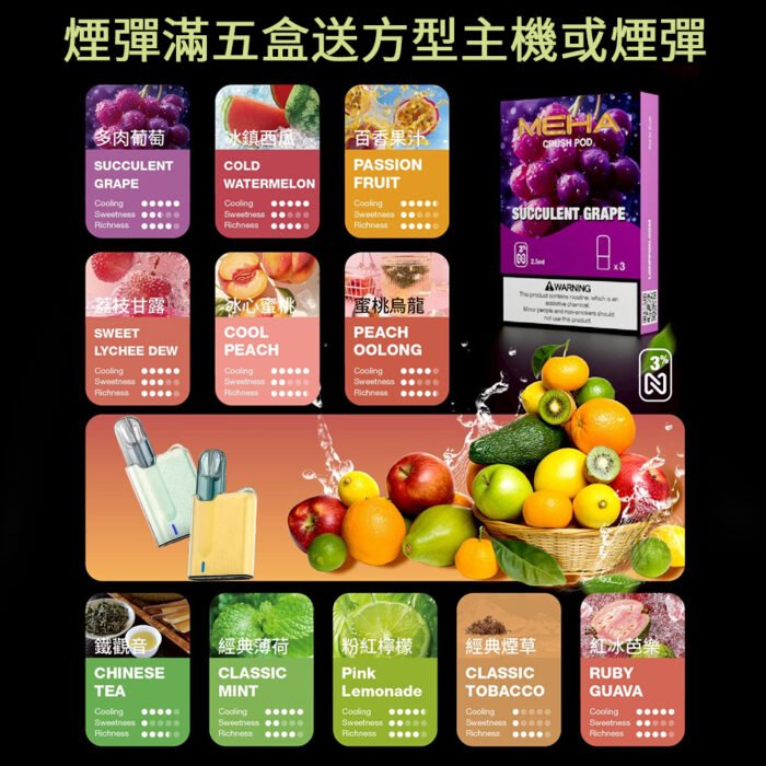 主機產品特點 時尚與智能結合:MEHA五代主機擁有現代化的設計,結合智能技術與安全性,專為現代煙民打造。 可調功率設置: 7W(白光):適合日常使用,享受清新口感,特別適合輕度吸煙者。 8.5W(绿光):提供更強勁的蒸汽,帶來濃郁的口感,適合普通吸煙者。 10.5W(藍光):最大功率檔位,讓您享受深沉的煙霧和強烈的沖擊感,專為追求極致體驗的煙設計。 多重功能,超凡體驗 方塊主機產品參數: