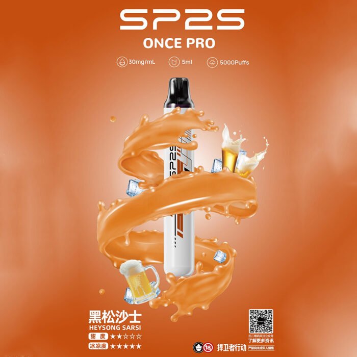 SP2S ONCE PRO 5000口一次性電子菸,搭載 5ml 大容量煙油與高效電池,提供長達 5000 口的持久續航。免充電、免注油設計,開封即用,这款SP2S電子煙輕巧便攜的流線型外觀兼具時尚與舒適握感,讓您隨時隨地享受高品質吸煙體驗。