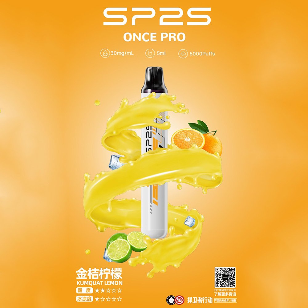 SP2S ONCE PRO 5000 PUFFS 一次性電子煙以時尚簡約的設計與強大性能著稱,內含 5ml 高品質煙油,提供約 5000 口的持久吸煙體驗,用完即棄,無需加油或充電,方便又省心。