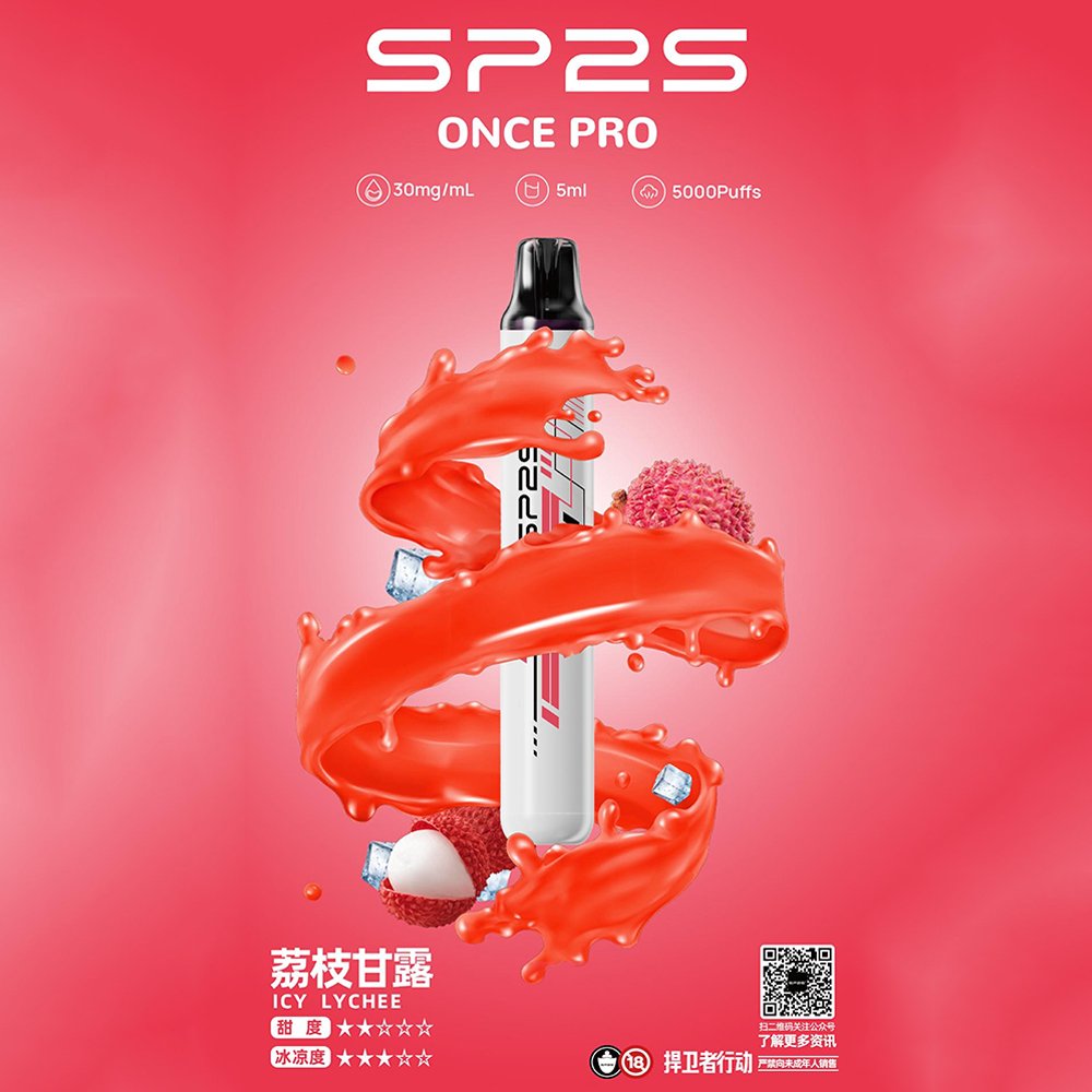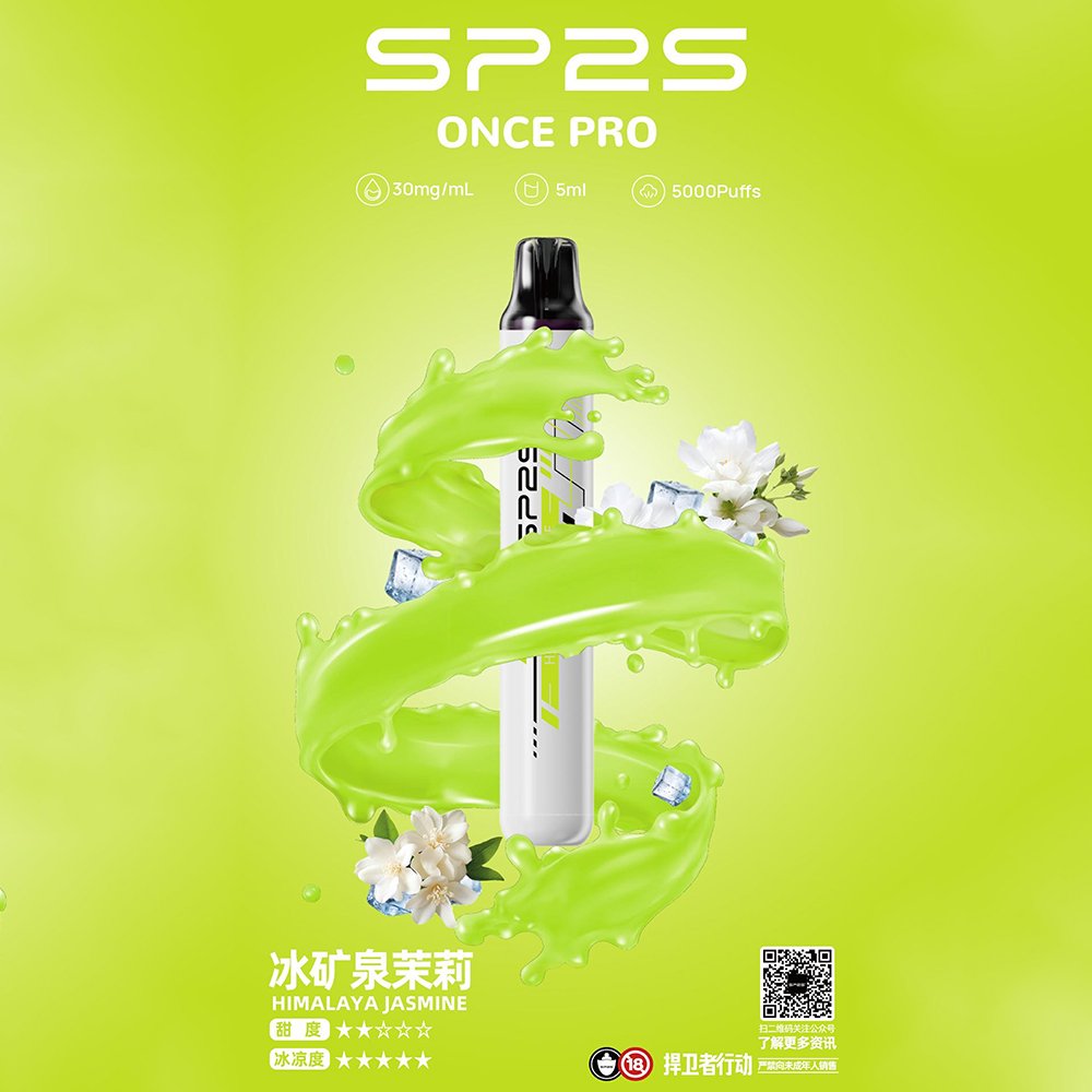 SP2S ONCE PRO 5000口一次性電子菸,搭載 5ml 大容量煙油與高效電池,提供長達 5000 口的持久續航。免充電、免注油設計,開封即用,这款SP2S電子煙輕巧便攜的流線型外觀兼具時尚與舒適握感,讓您隨時隨地享受高品質吸煙體驗。